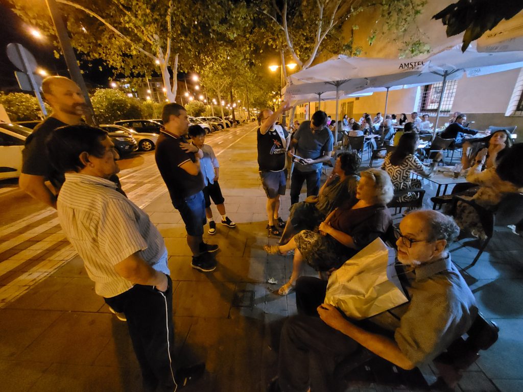 La peña Levantista viveros-Vallejo culminó su tradicional cena con la visita conmemorativa a la antigua entrada del campo Viveros-Vallejo del Levante U.D. Quedando una bonita postal como recuerdo.