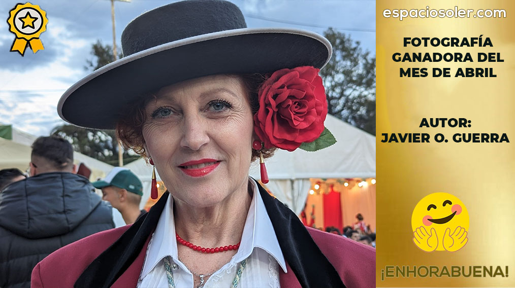 Por segundo mes consecutivo, la fotografía de Javier ha sido la elegida como ganadora. En esta ocasión, su obra se titula «Mirada sevillana» capturando la belleza en una mirada durante la tradicional fiesta sevillana durante el mes de abril, celebrada cada año en el rio Turia de Valencia . La imagen de Javier será la protagonista del mes de abril en la edición impresa del calendario de pared para el año 2025.