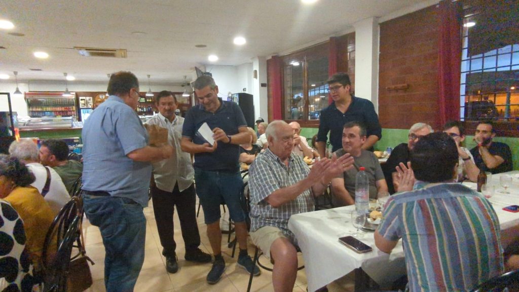 Juanjo, otro miembro de la directiva de la peña, también tuvo un detalle especial para Fernando, uno de nuestros peñistas que ganó la porra de la pasada temporada. El trofeo de la porra fue una idea de nuestro compañero Francisco Villaescusa, a quien desde aquí le queremos agradecer su iniciativa.