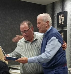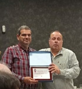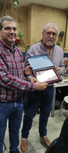 Manolo Peris, expresidente de las peñas, recibió la placa de Antonio Muñoz, que vice secretario y directivo relación con las peñas. Manolo Peris entregó a Dionisio Montesinos y Juanjo Triguero a José Manuel Moyano.