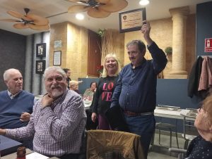 El presidente de la peña Viveros-vallejo Manuel Peris compartió las siguientes palabras: “Buenas tardes a todos. Hemos celebrado esta comida que ha servido para deseamos lo mejor en Navidad y Año Nuevo. Esta comida ha servido para que también peñistas que no pueden por la noche también compartan la armonía peñista. Así mismo, la Peña Levantinista Viveros Vallejo y también la agencia Nuevas Dimensiones han querido reconocer a uno de nuestros peñistas con pasado dentro de la directiva de la delegación, miembro de otras peñas y directivo de la comisión de nuestro centenario en 2009, acompañado también de Rosa, tía de Francisco Villaescusa quien fue uno de los galardonados .