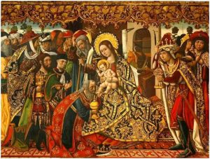 Es la escena central de uno de los retablos más emblemáticos del Museo de Bellas Artes San Pío V de Valencia, el Retablo de los Tres Reyes o de la Epifanía.