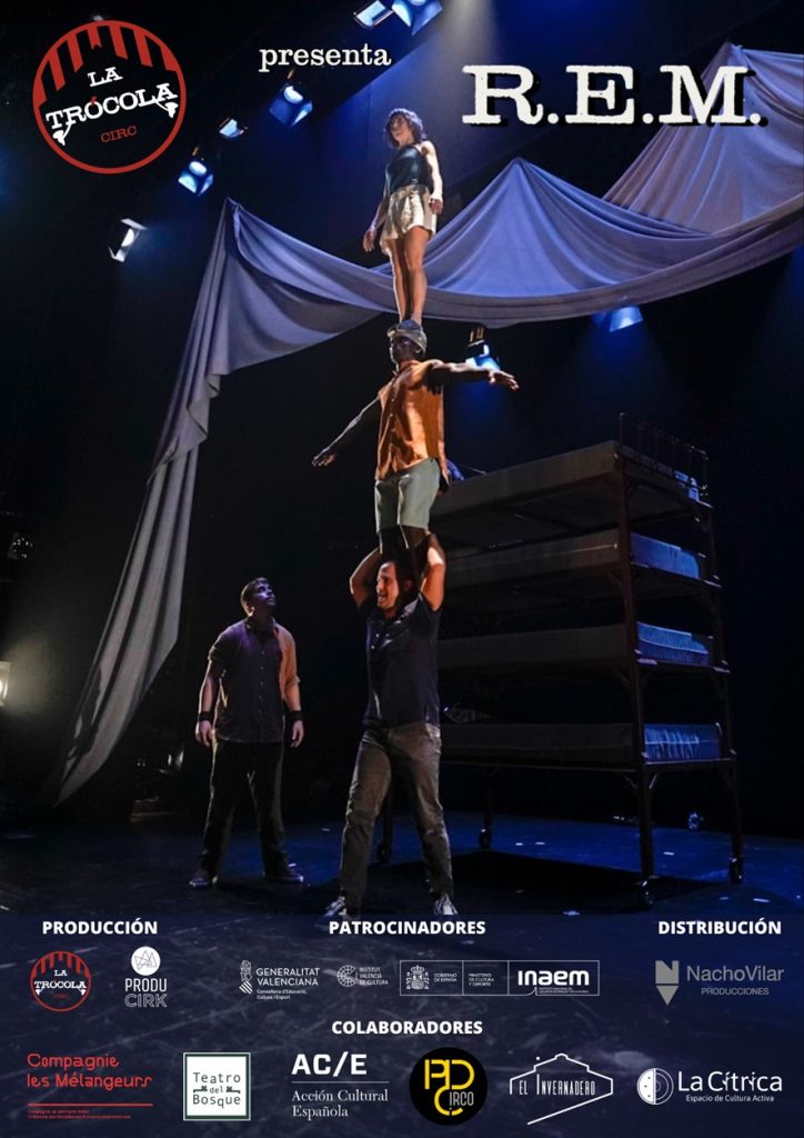 Tras más de 250 funciones con “Emportats” y 10 años desde la aparición de la compañía, deciden llevar a cabo su tercera creación presentando R.E.M. en mayo 2023. R.E.M. es una obra que mantiene la investigación de objetos, pero sumergiéndose en una dramaturgia elaborada. La obra habla de los sueños, a través de escenografías vivas, en esta ocasión 4 camas.